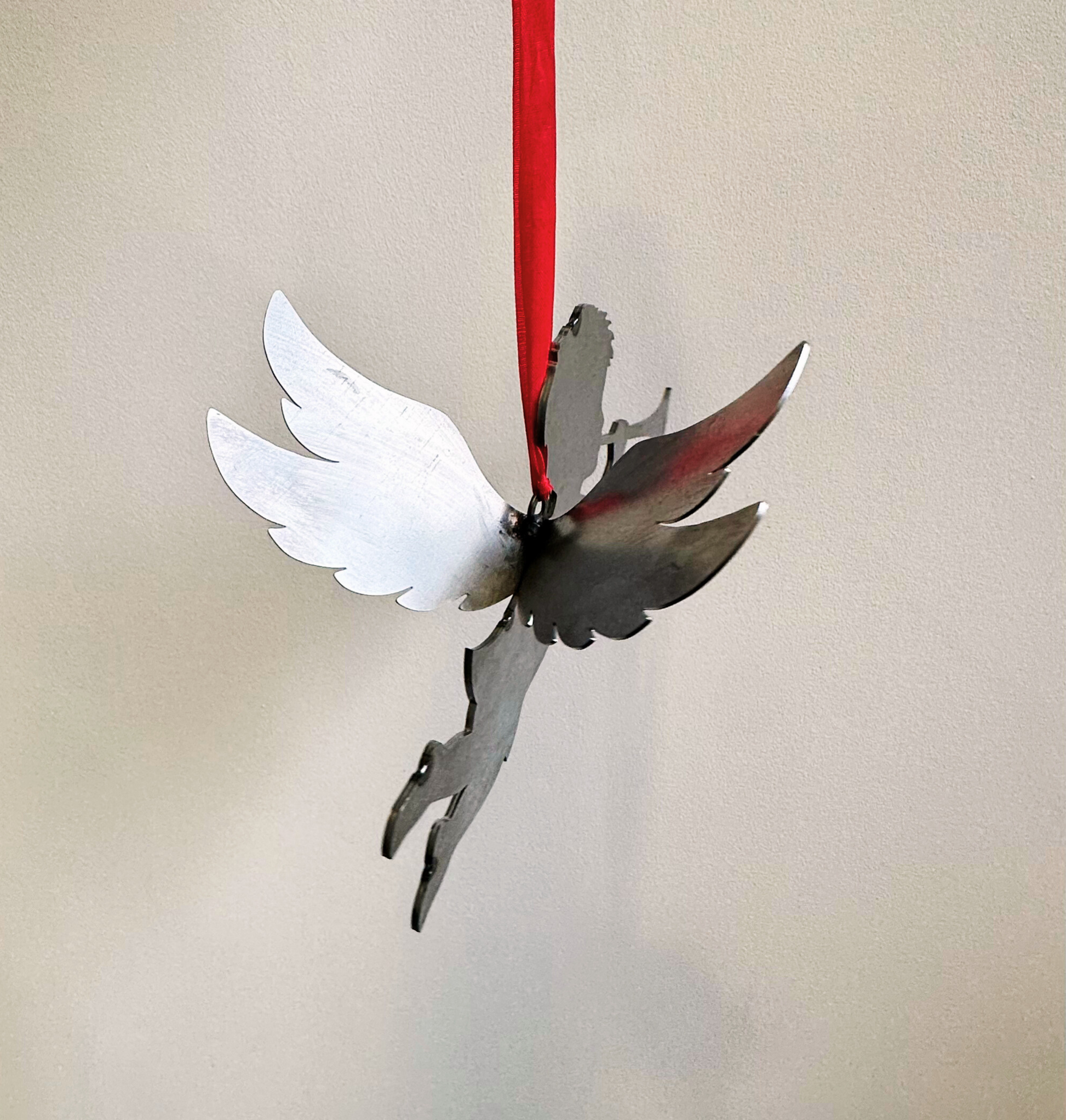 Zauberhafte Deko für drinnen und draußen: Unser fliegender Engel aus robustem Stahl hat die Größe 30 × 20 cm und ist vielseitig einsetzbar – zum Hinstellen, Aufhängen oder als Beete-/Pflanzendeko.
