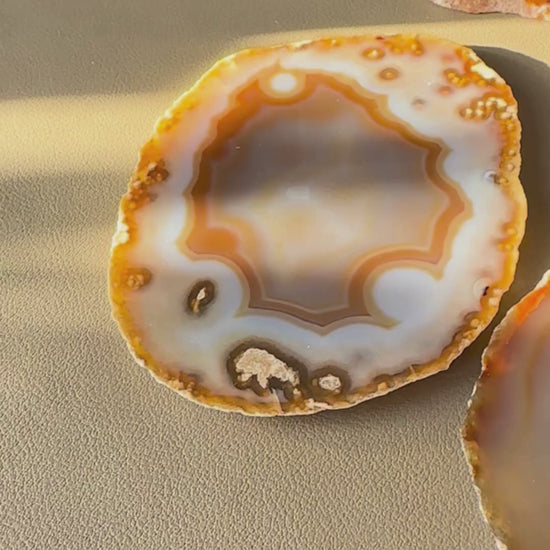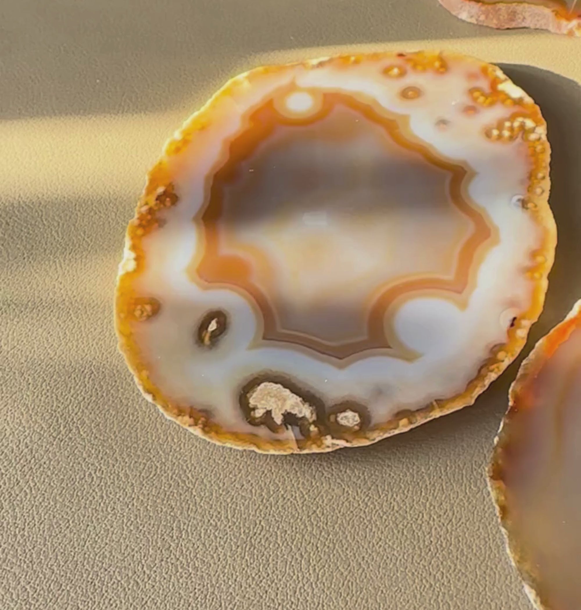 Sie erhalten genau die auf dem Foto abgebildete Achat-Scheibe – ein echtes Unikat mit individueller Farbe und Musterung. Ideal als dekoratives Element, Unterlage für Kristalle oder kleine Gegenstände, zur Meditation oder einfach als stilvolles Accessoire.
