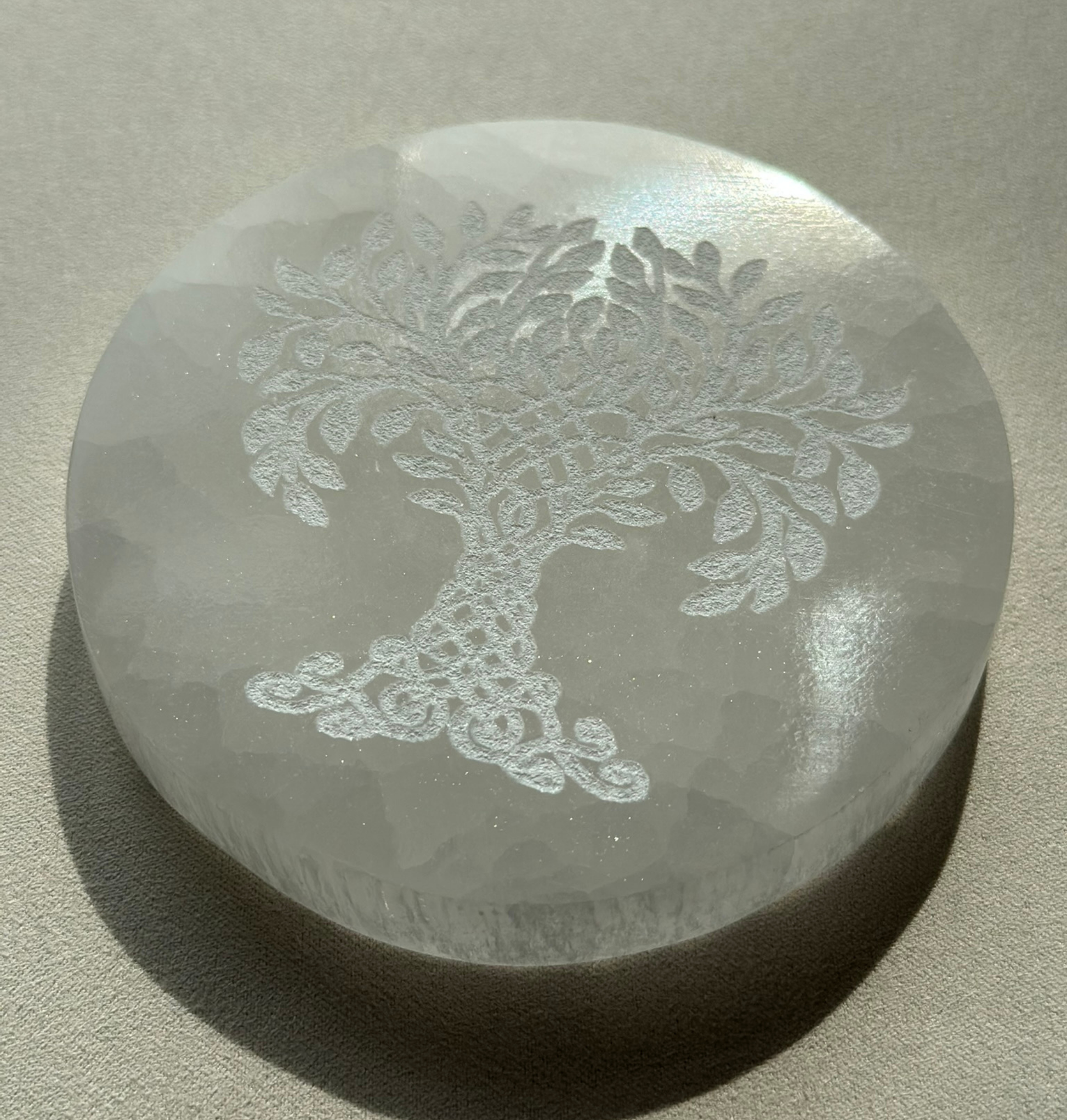✨ Edelstein Selenit Platte mit Lebensbaum / Dekostück ✨